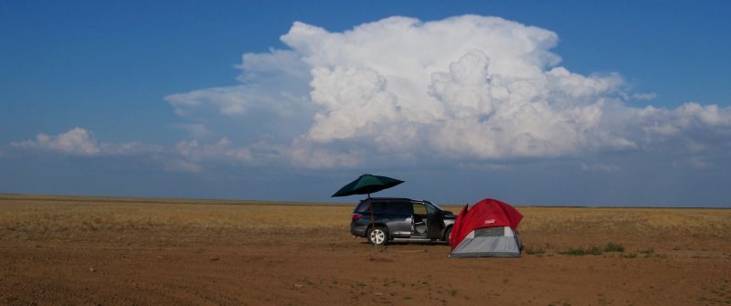 Camping at the Ping Wind Farm — one of the best decisions ever. The farm consists of a couple of sections of land … has two large playa lakes, and basically is in the bottom of a long, gradual decline in elevation … for miles in every direction, nothing by beautifully flat, upward sloping horizon — an unbelievable canvass for sunrises and sunsets … with nothing but farmland between the viewer and the pastel colors. And on the night I sat up my tent, there were huge … HUGE thunderclouds swelling off in the distance, right at sundown. The lightshow was beyond words, yet the storms never dared to cross over Dry Gulch … leaving me dry and amazed at the beauty — “not skeerd.” I thought it couldn’t get more wonderful … when later that night I saw the most defined, clear shooting star … ever. I was stargazing in a portion of the sky — actually looking for satellites that are sometimes visible to the naked eye — when a meteorite fired up exactly where I was looking … like a flaming smore in the sky, I tell yah.